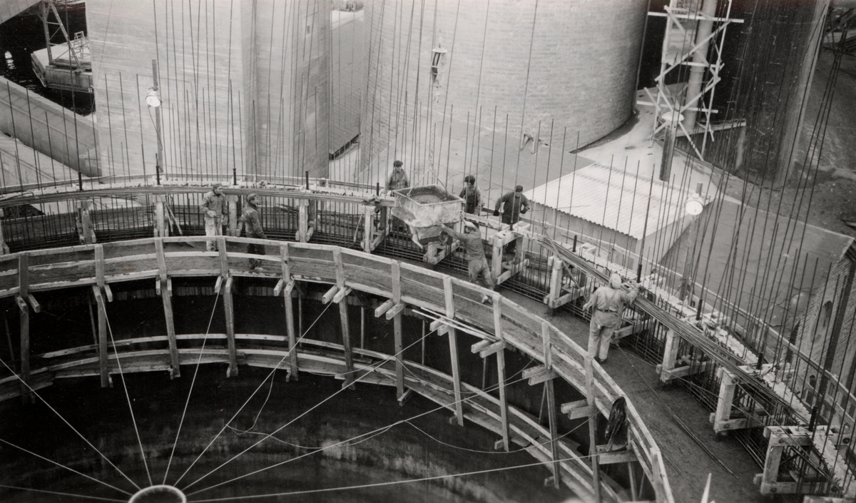 Cementsilo i Slite, Gotland. Byggd av Skånska Cementgjuteriet i november 1946. Detalj av gjutformen.