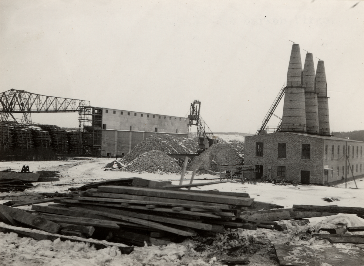 Östrands sulfatfabrik i Medelpad. Kalkugnarna och en bit av brokransen.