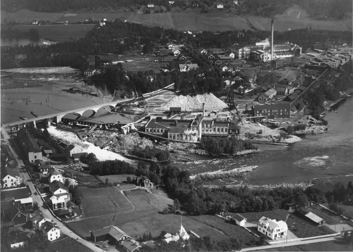 Flygfotografi över Matfors pappersbruk i Medelpad.