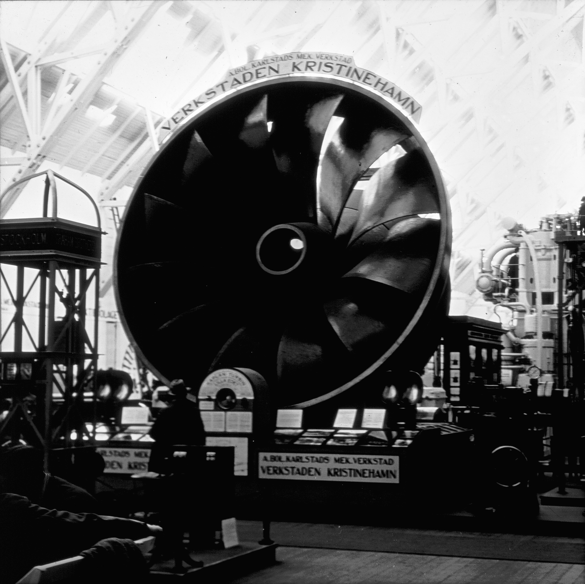 Skioptikonbild med motiv från Göteborgsutställningen 1923. Maskinhallen.