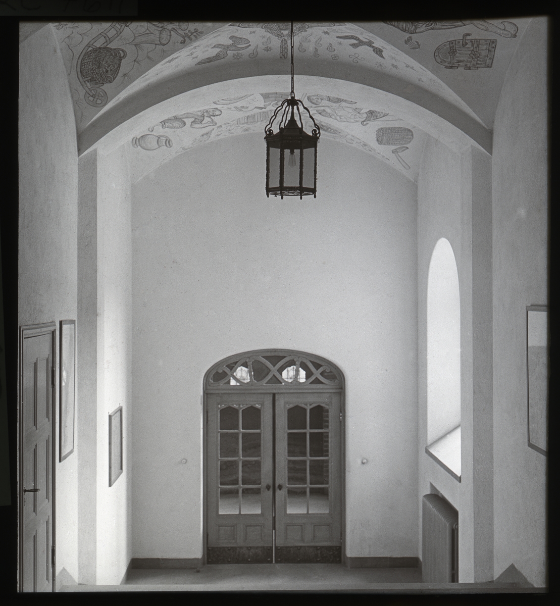 Skioptikonbild från institutionen för fotografi vid Kungliga Tekniska Högskolan. Använd av professor Helmer Bäckström som undervisningsmaterial. Bäckström var Sveriges förste professor i fotografi vid Kungliga Tekniska Högskolan 1948-1958. Trapphus. På bilden står skrivet: indir. svaveltoning. För mer info: Se Fotografisk Handbok av Helmer Bäckström. Natur och Kultur. Andra omarbetade upplagan 1958-59. Kap 75-79 Toningsförfaranden för silverbilder (sid 585 och följande).