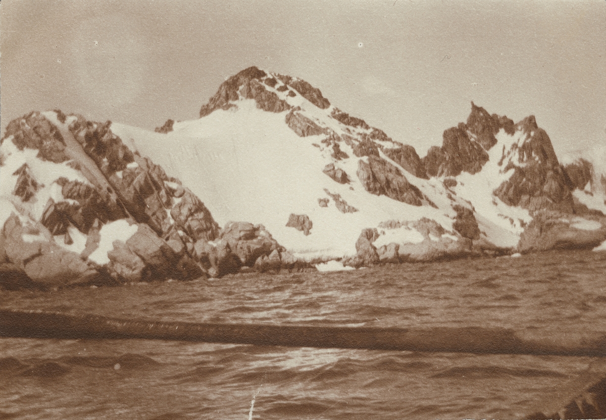Fotografi från första svenska Antarktisexpeditionen 1901-1904. Motiv av hav, himmel och snötäckt berg.