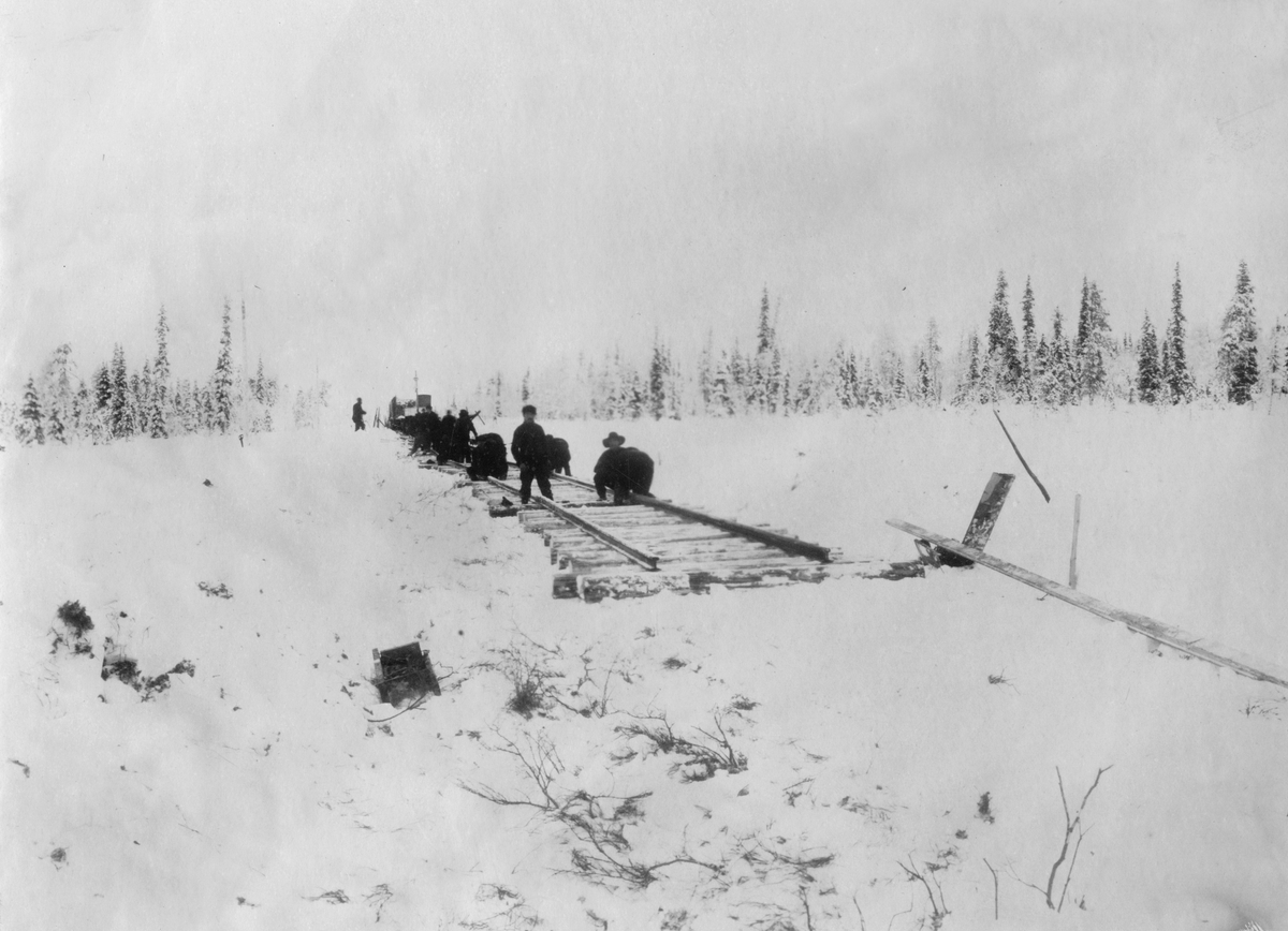 Porjus Kraftverket. Rälsläggning för Inlandsbanan på tundran.