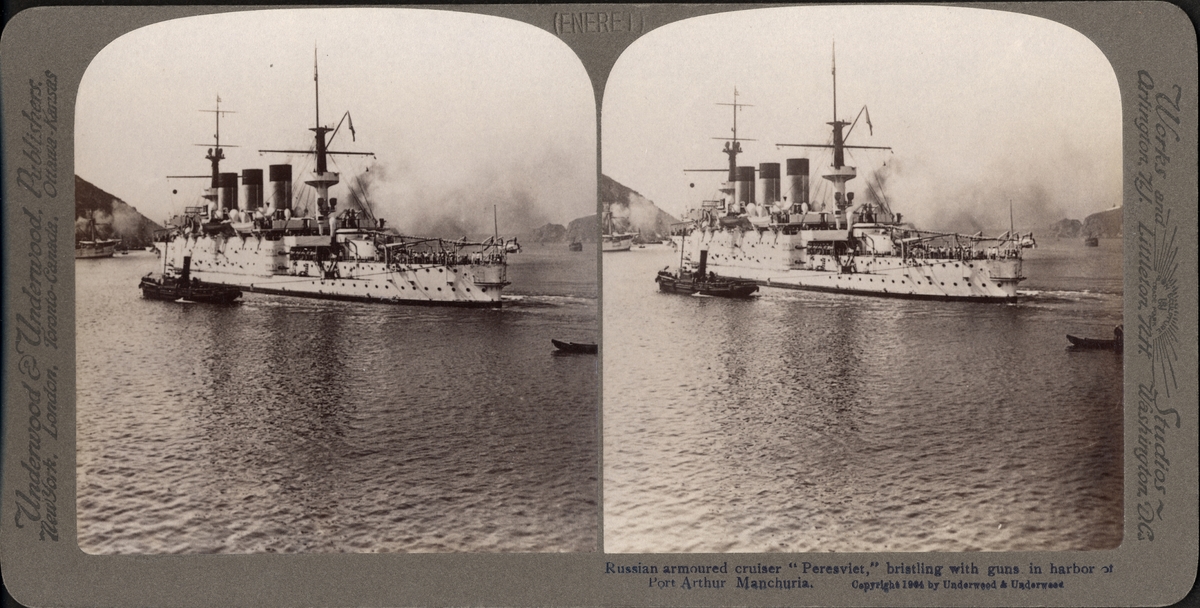 Stereobild av Ryska krigsfartyget "Peresviet", Port Arthur.