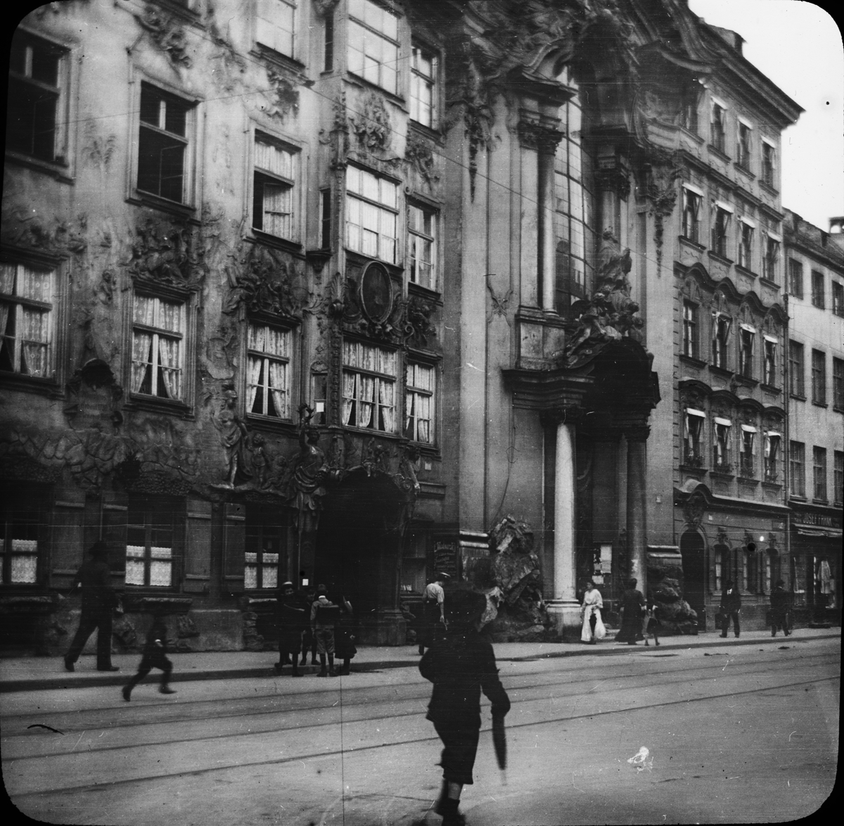 Skioptikonbild med motiv Asamhaus vid Asamkirche i München.