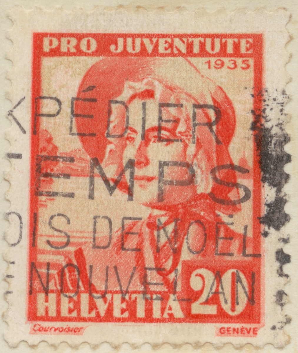 Frimärke från Schweiz, 1935. Motiv av kvinnodräkt, Geneve.