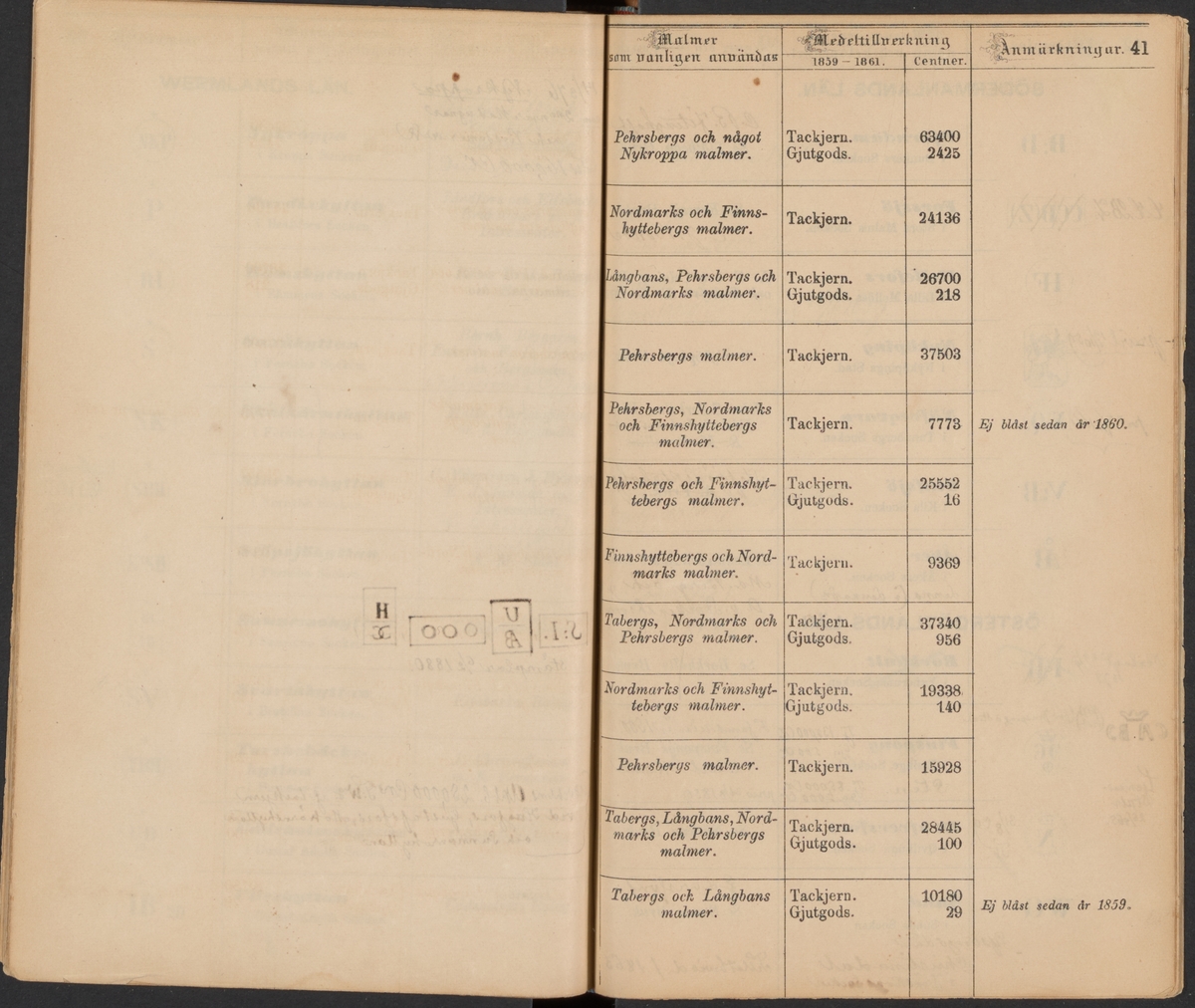 Titel: Stämpelbok för Svenska Järnverken 1864, med supplement 1867. Delvis handskrift. Ur Carl Sahlins bergshistoriska samling.