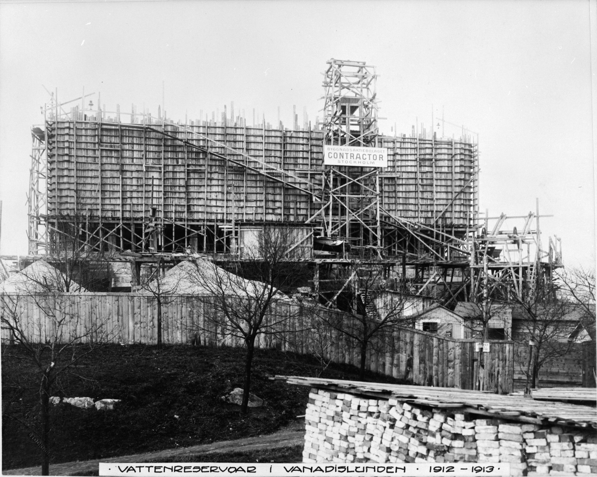 Byggherre: Byggnadsaktiebolaget Contractor, Stockholm. Vattenreservoar i Vanadislunden.