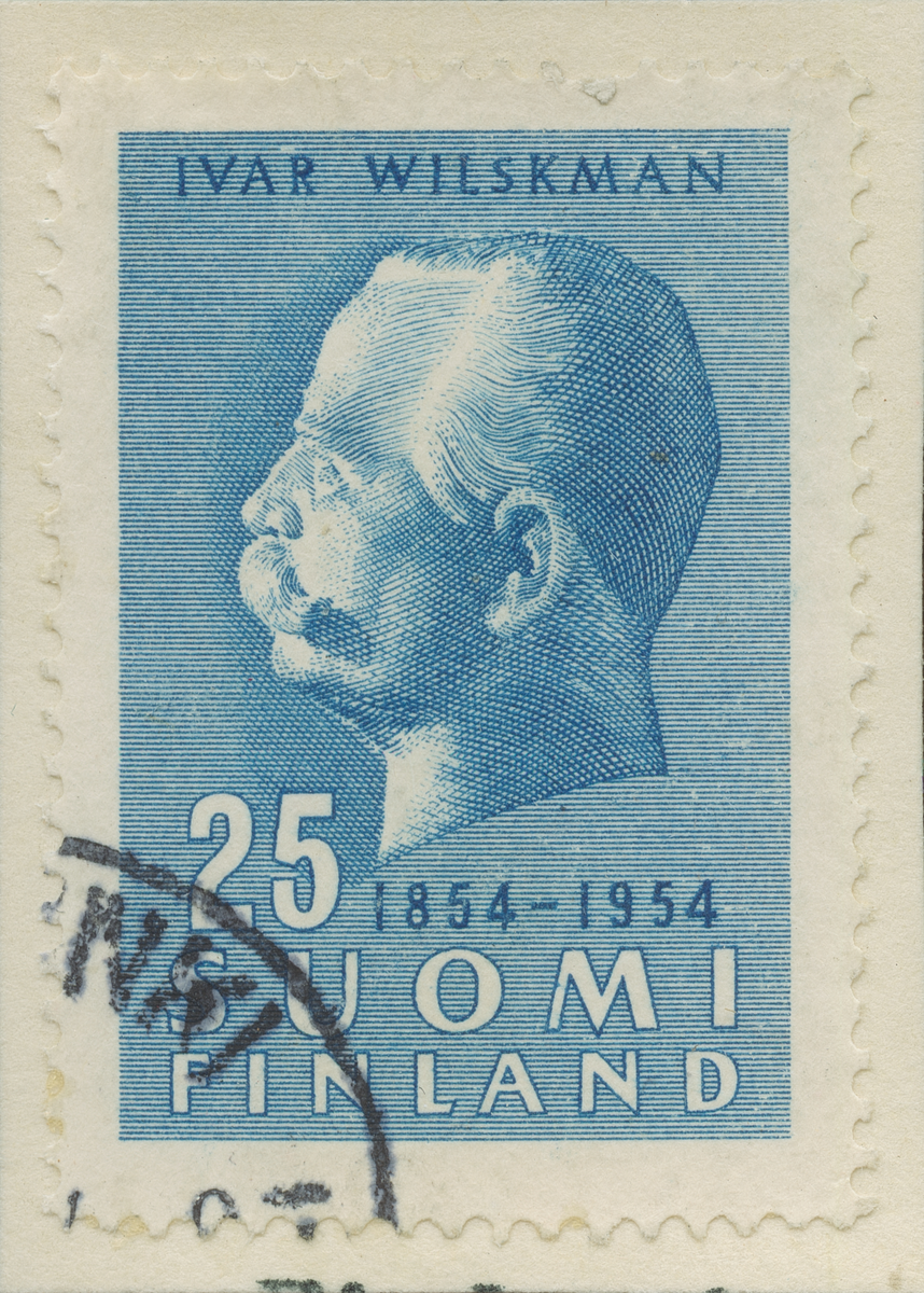 Frimärke från Finland, 1954. Motiv av Ivar Edvar Wilskman 1854-1932 "Den finska idrottens fader". "100-årsminne av hans födelse: 1854-1954".