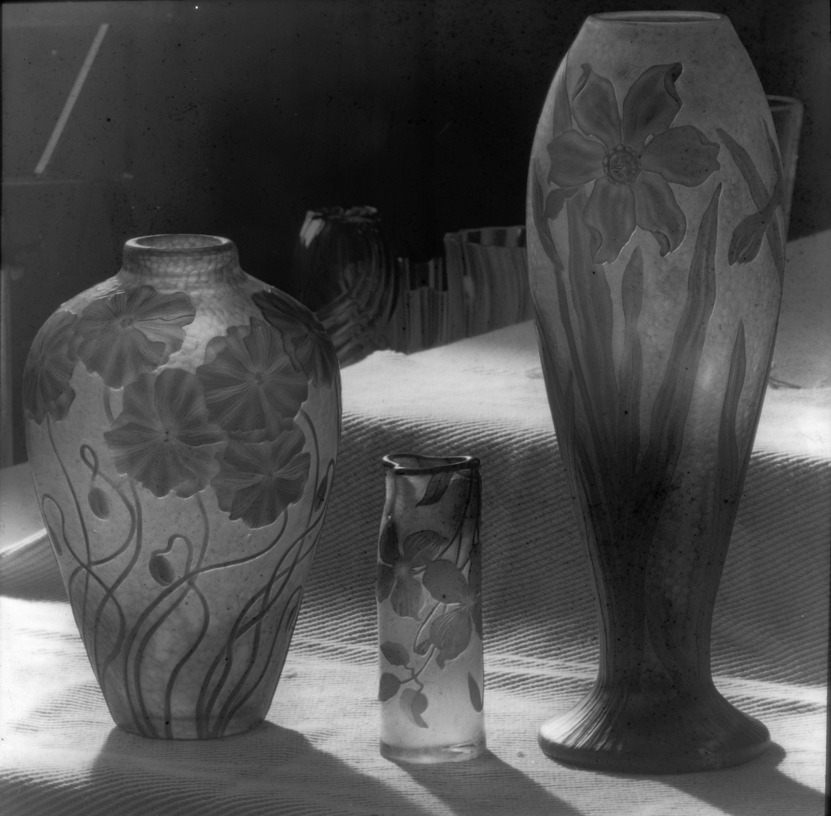 Bild om glaset, dess tillverkning och historia, med motiv av färdigt glas, tillverkningsprocessen och hantverket.