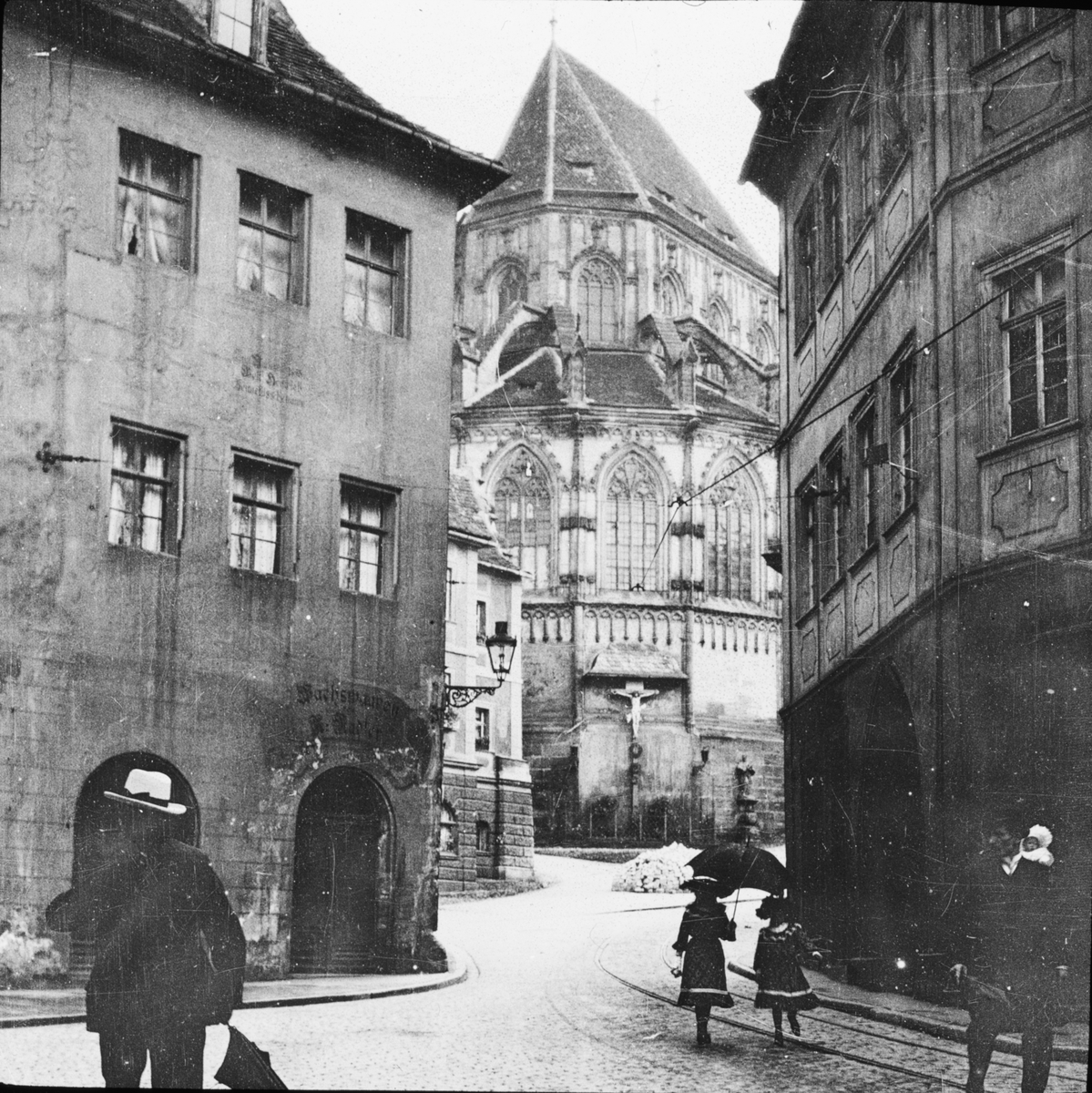 Skioptikonbild med motiv av Obere Pfarrkirche i Bamberg.