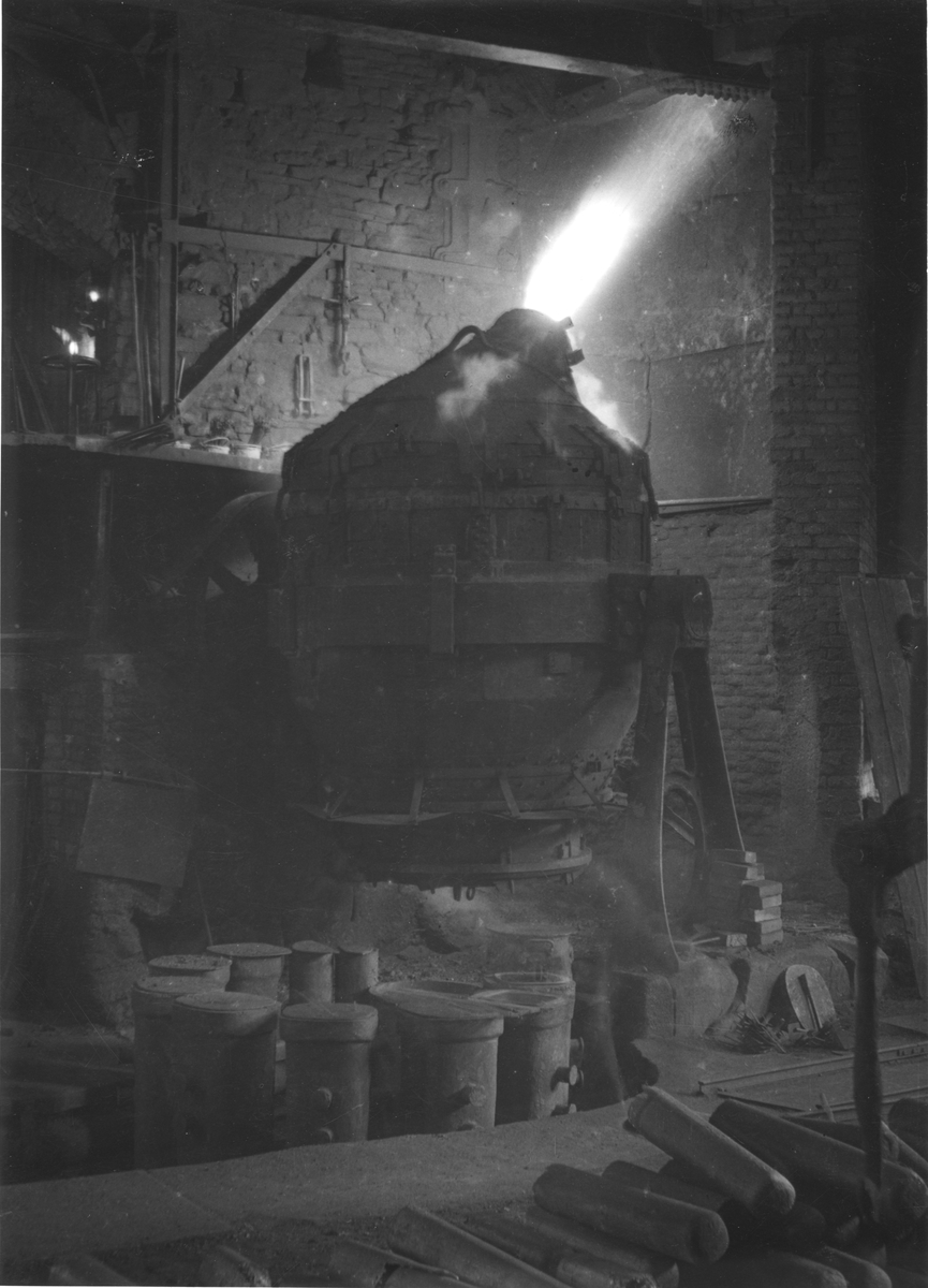 Bessemerblåsning vid Forsbacka Järnverk. Fotot är taget vid Tefas pristävlan 1941.