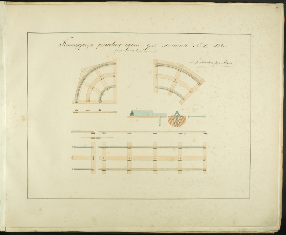 Skiss på ryska 1884, ur boken med ritningar mm 1868-1887, av den svenske torvmaskinkonstruktören Aleph Anrep.