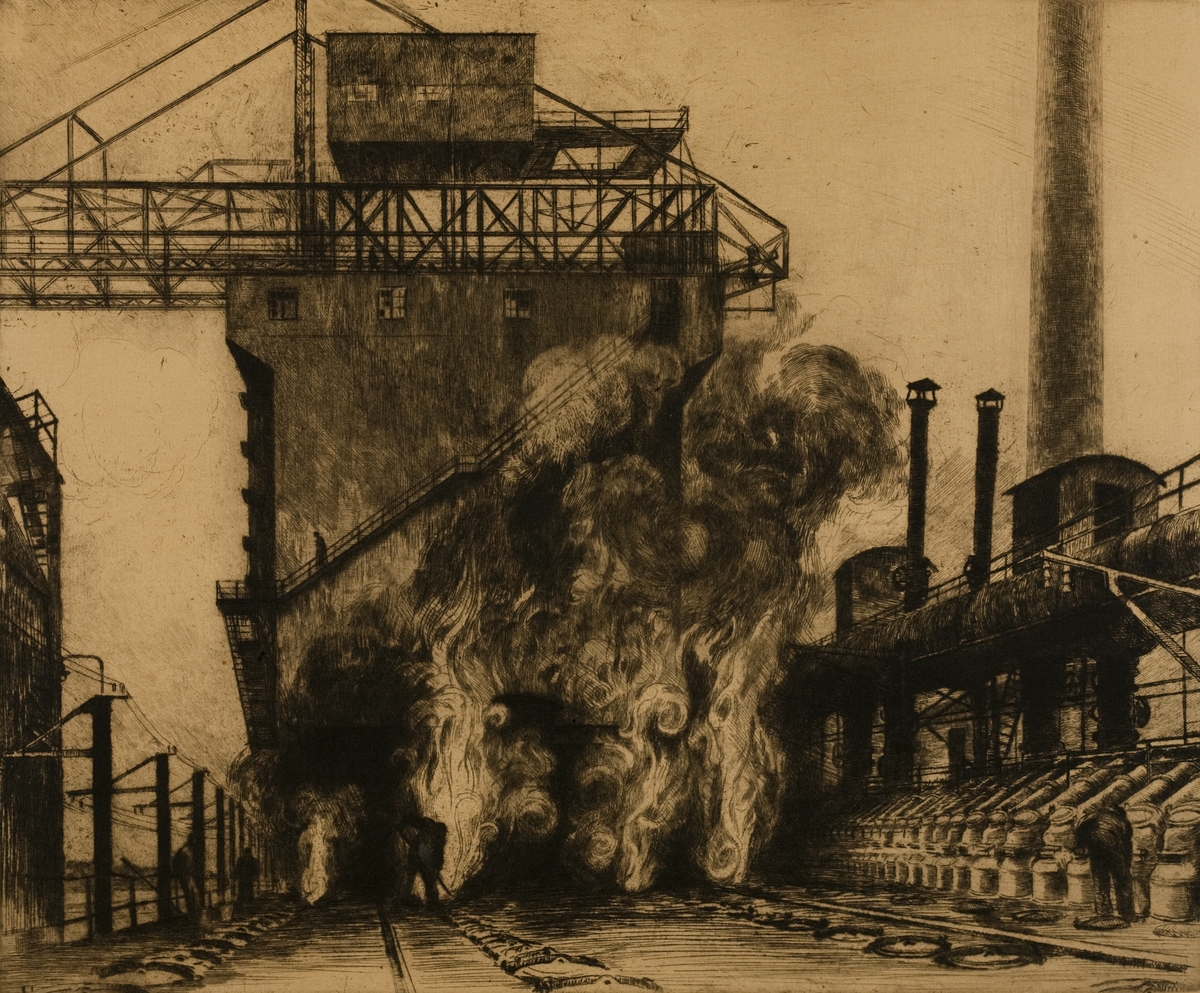 Exteriör av Stockholms Gasverk i Värtan. Råkammarsugnarna.