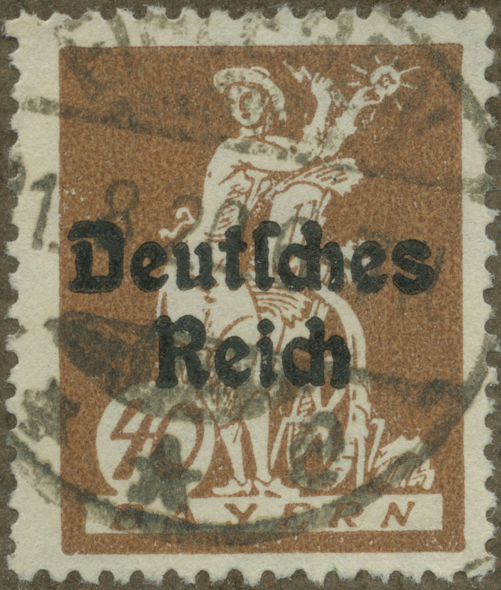 Frimärke ur Gösta Bodmans filatelistiska motivsamling, påbörjad 1950. Frimärke från Bayern, 1920. Motiv av Symbolisk Bild Industrien.