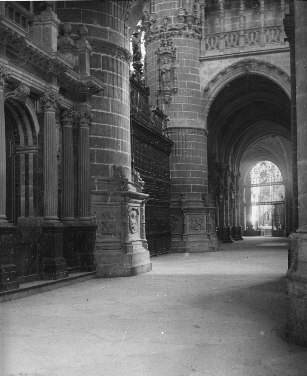 Skioptikonbild med motiv från Sigurd Curmans resor i Europa. Okänd katedral i Spanien.