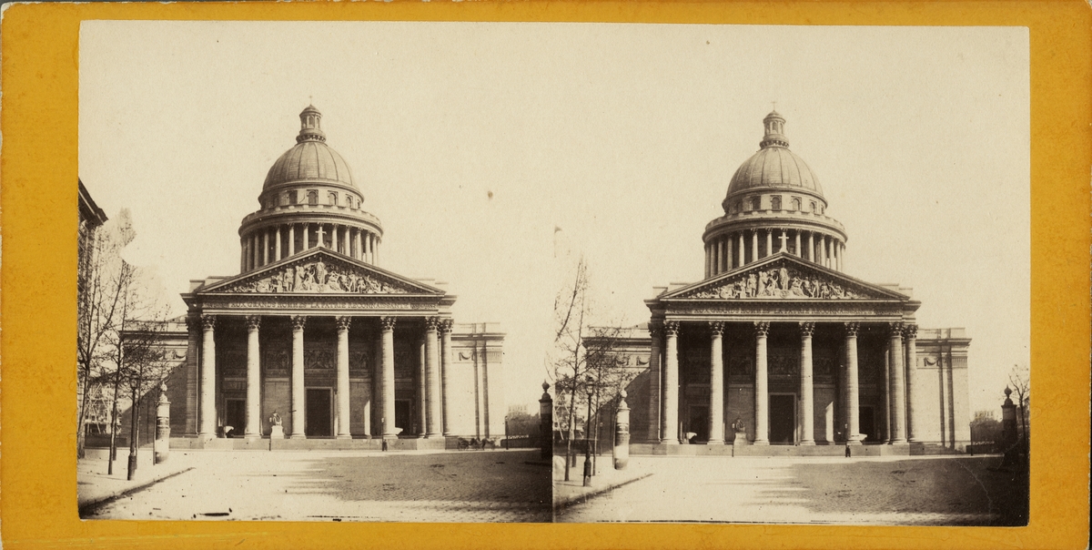 Stereobild med motiv av Panthéon i Paris, som fungererar som ett mausoleum för prominenta franska medborgare. Här vilar bland annat Voltaire, Jean-Jacques Rousseau, Victor Hugo och Jean Moulin.
