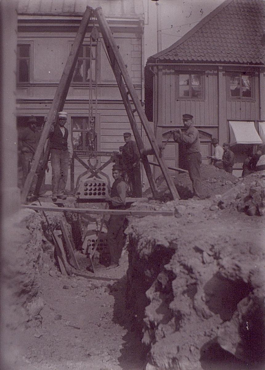 Kalmar stationer och kabelarbete omkr. 1900. Kabelarbete.