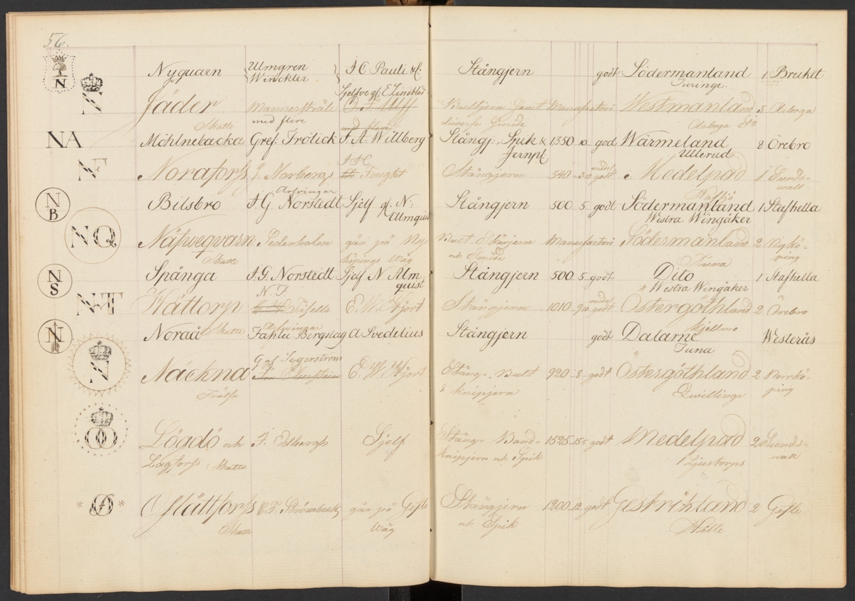 Titel: Stämpelbok över Stockholms stora järn- och metallvåg år 1818 med register. Handskrift. Tillägg och rättelser från 1828. Ur Carl Sahlins bergshistoriska samling.