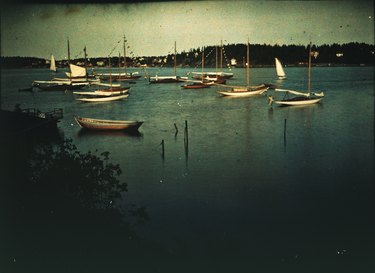Lumières-autokrom. Furusund Stockholms skärgård efter segelregattan. Fotograferat i juni 1910.