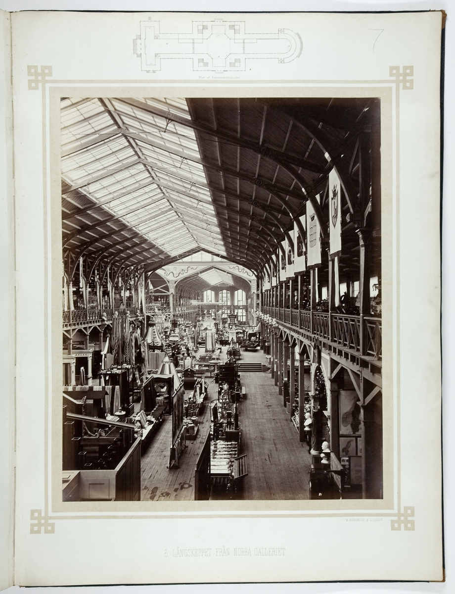 Fotografiska bilder från den första allmänna skandinaviska industriutställningen i Stockholm.