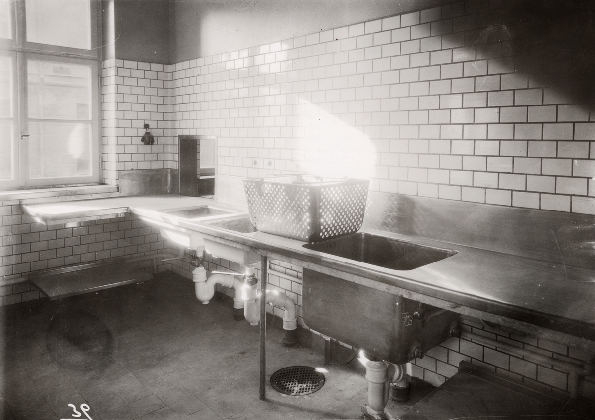 Diskbänkar på Serafimerlasarettet. Tillverkade vid Avesta Järnverk (Avesta Jernverk).