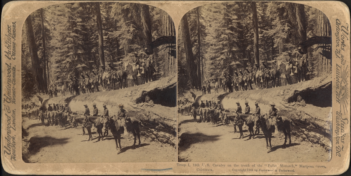 "Troop 1, 15 th U.S Cavalary on the trunk of the "Fallen Monarch", Mariposa Grove, California".