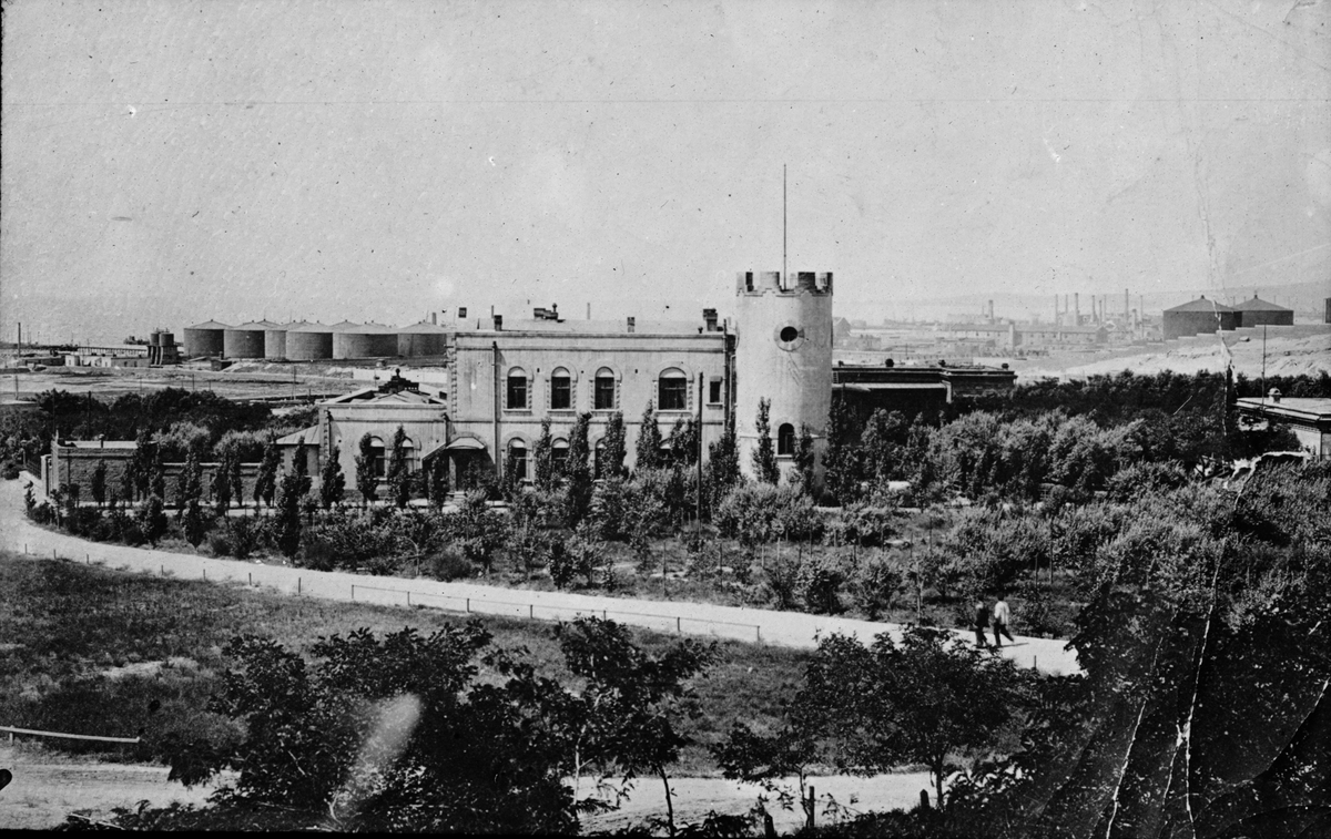Skioptikonbild från A.W. Cronquists besök i Baku- oljedistrikt 1903.