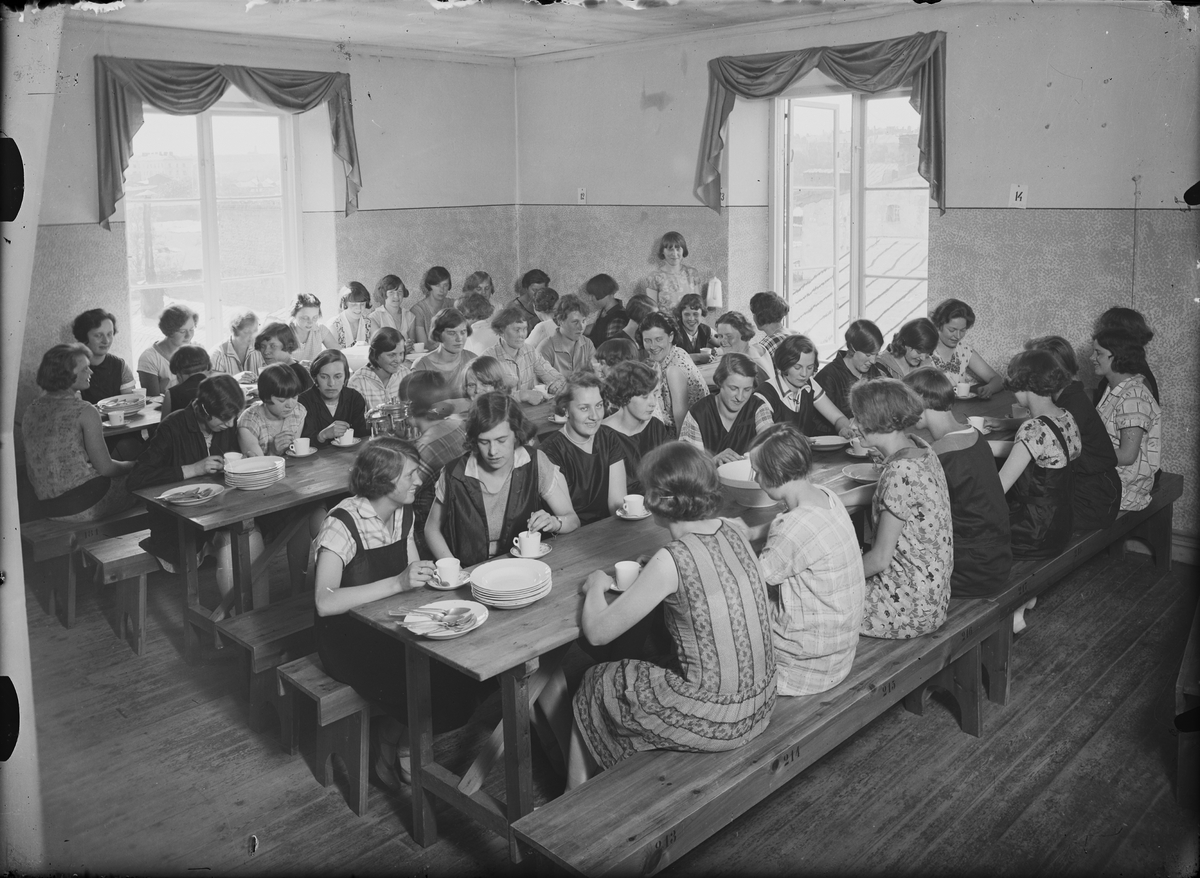 Bild från arbetsplatsdokumentation utförd av Arbetarskyddsstyrelsen. Okänt lunchrum. Möjligen på textilfabrik.