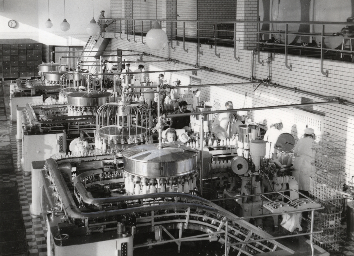 Tappning av konsumtionsmjölk vid Mjölkcentralen, Stockholm.