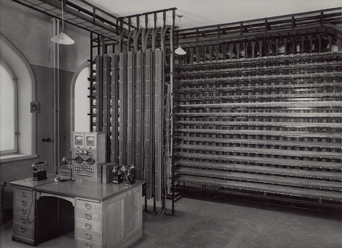 Karlaplan 2. Korskopplingsstativets linjesida jämte undersökningsbord.