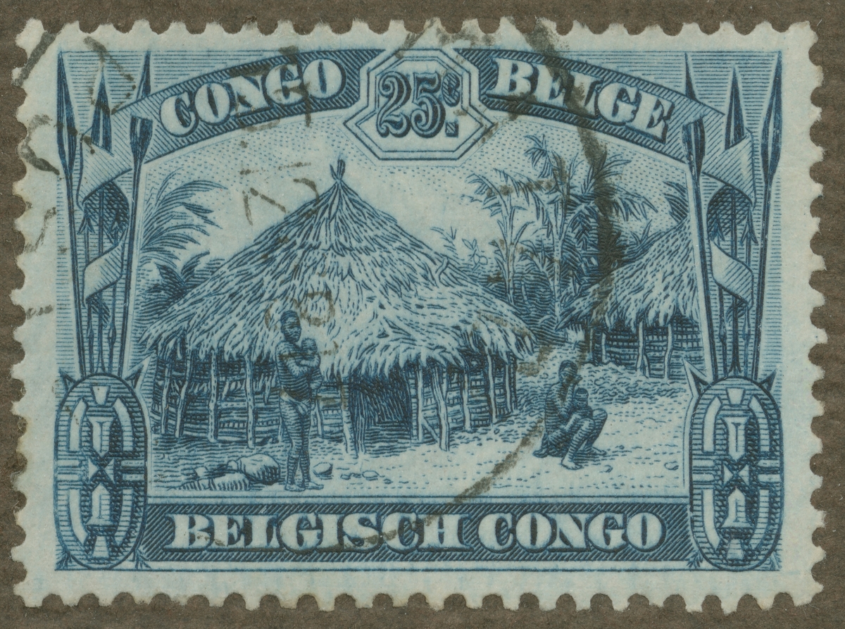 Frimärke från Bengaliska Congo, 1932. Motiv av Hydda i Uele, Kongo.