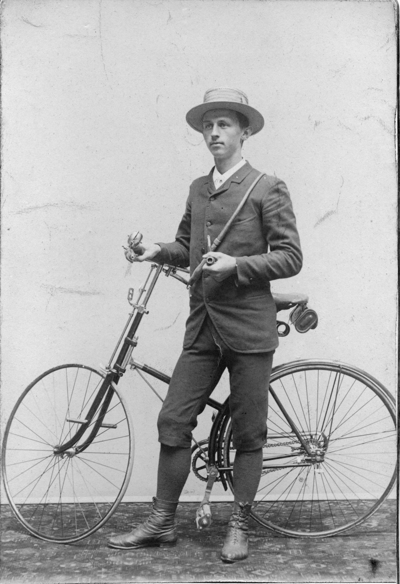 En sydsvensk cyklist eller "hjul-ryttare" 1889 i Malmö. Sedermera veterinär Oscar Sten.