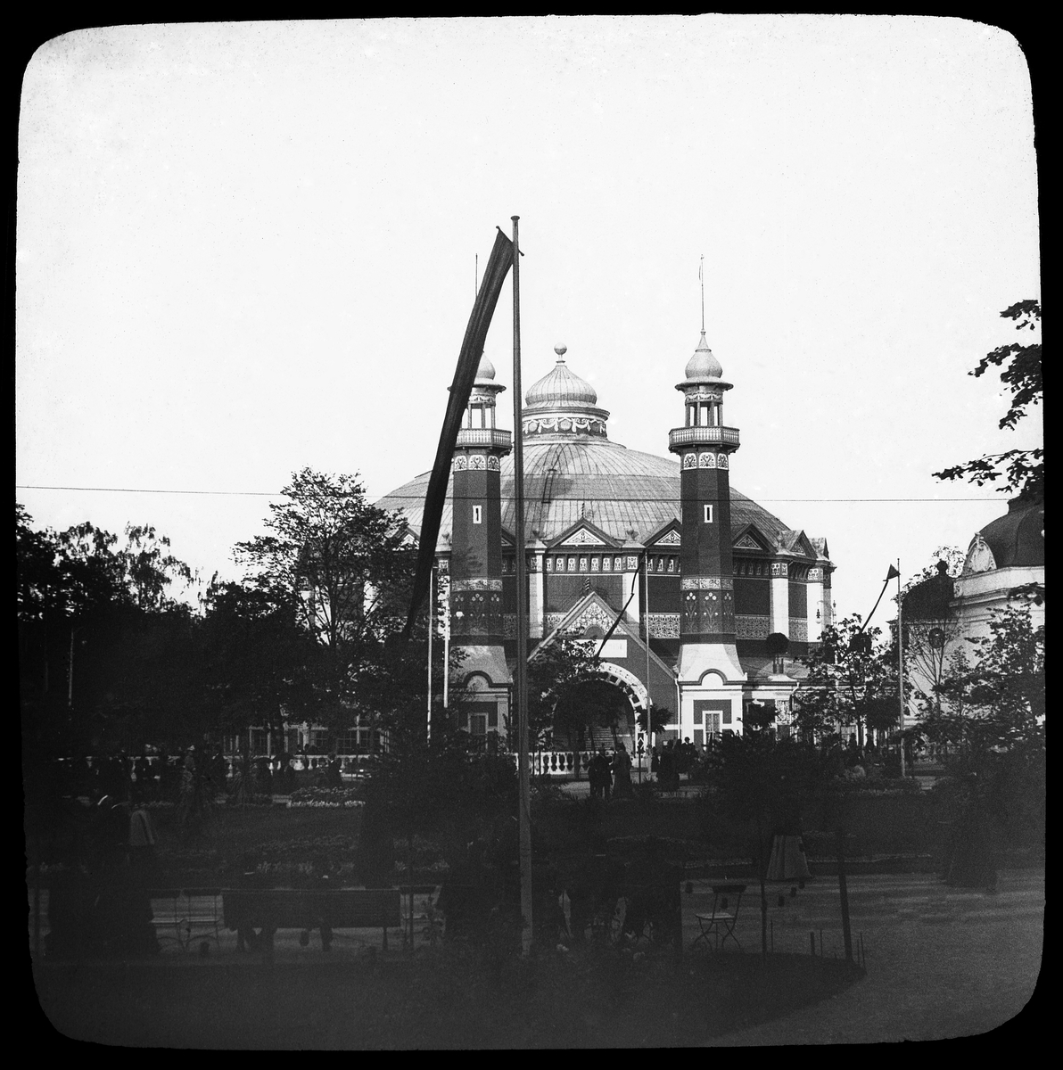 Skioptikonbild med motiv från Allmänna Konst- och Industriutställningen i Stockholm 1897.