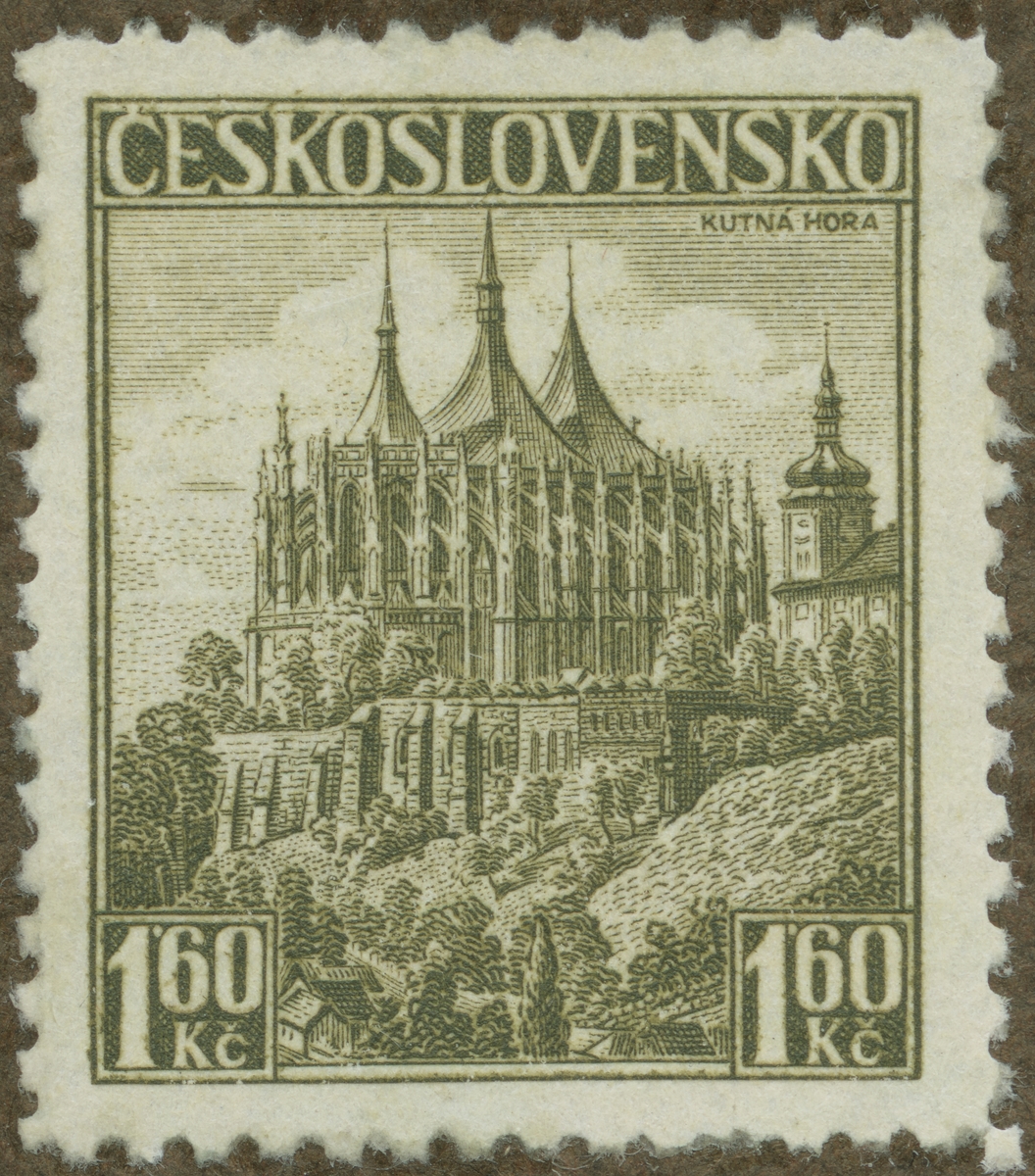 Frimärke från Tjeckoslovakien, 1936. Motiv av St. Barbara kyrka i Kutna Hora.
