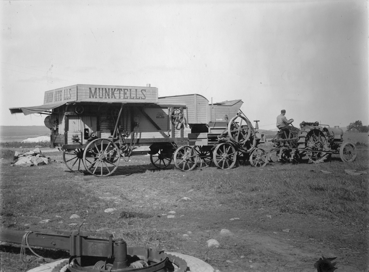 Traktor med tröskverk. Tillverkad vid AB Munktell i Eskilstuna.