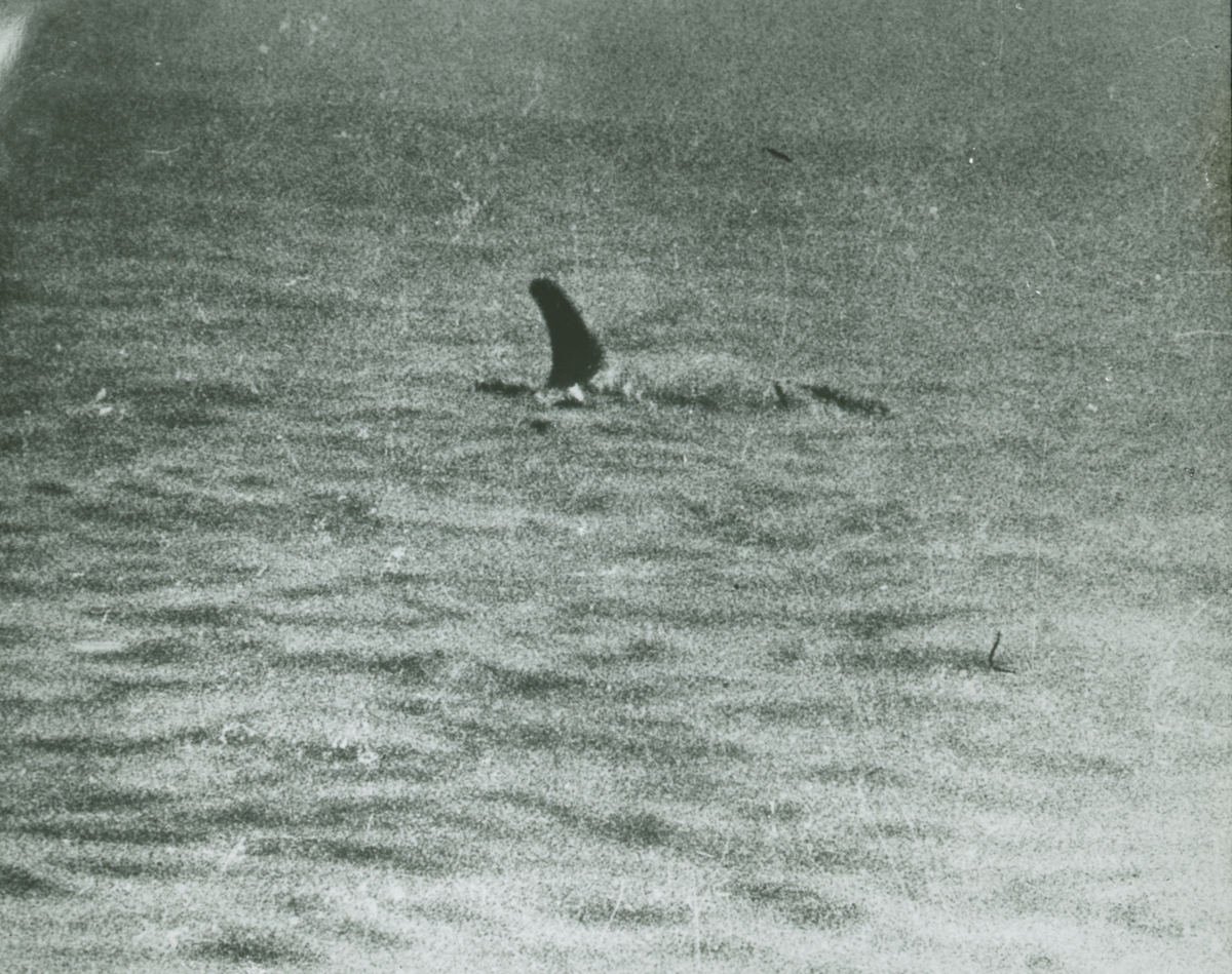 Fotografi från Spetsbergen. Motiv av ryggfena troligtvis tillhörande späckhuggare i havet.