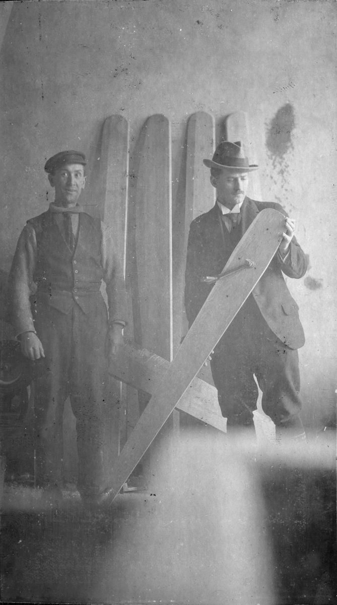 Fotografi ur album från Meisters-Flygaktiebolag i Göteborg. Karl Gustaf Meister undersöker propellerbladen.
