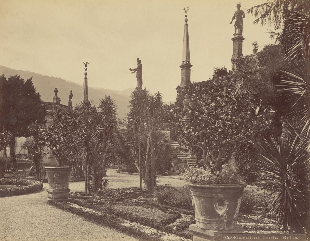 Skulpturparken Giardiono på ön Isola Bella i Lago Margiore, Italien, 1883.