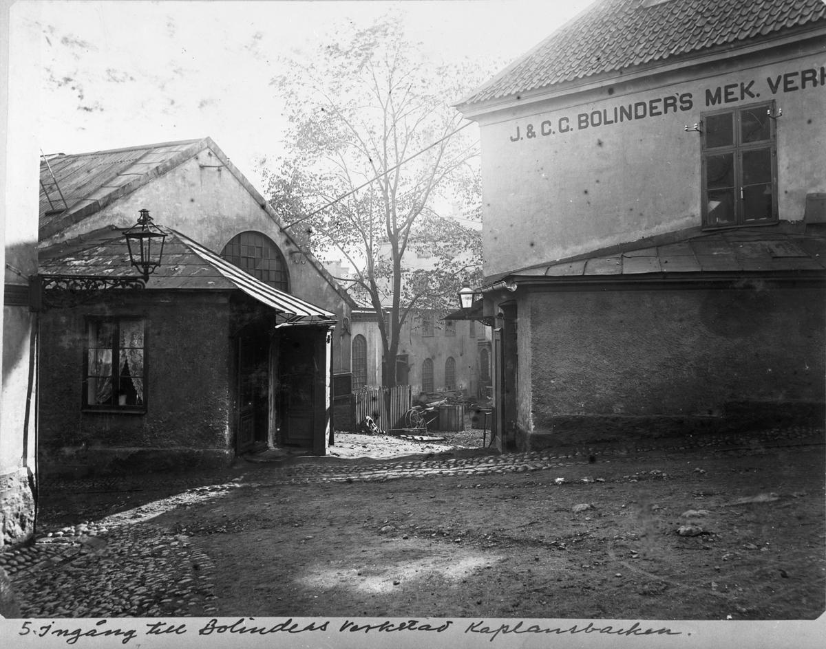 Ingång till Bolinders Mekaniska Verkstad vid Kaplansbacken i Stockholm.