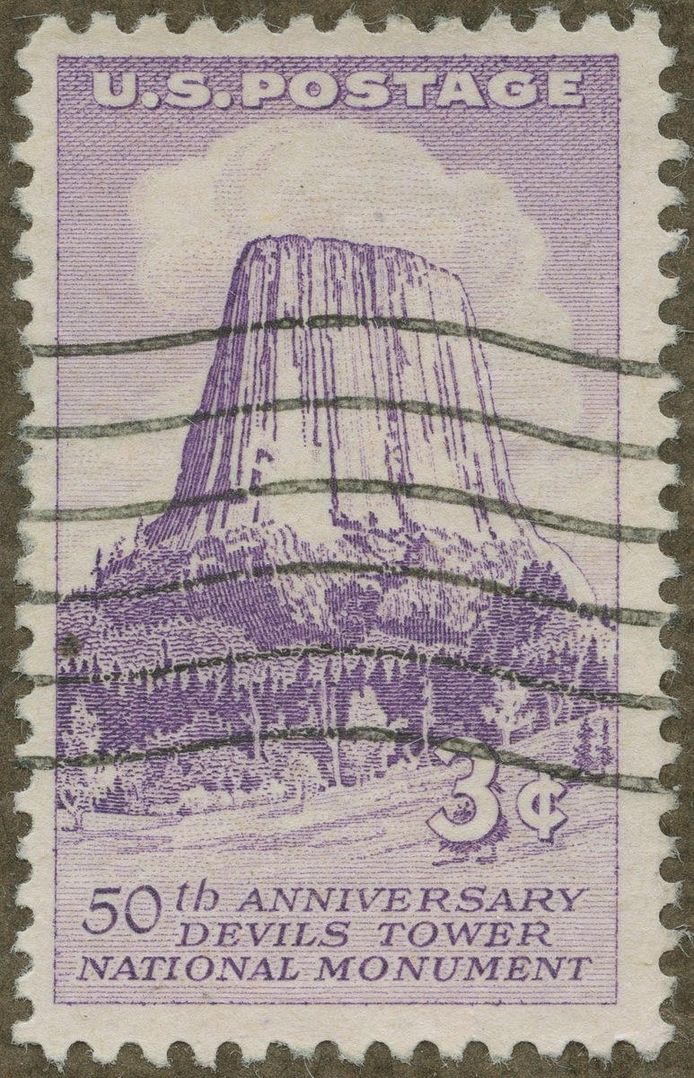 Frimärke ur Gösta Bodmans filatelistiska motivsamling, påbörjad 1950. Frimärke från U.S.A., 1956. Motiv av Klippan "Djävulstornet" "Naturskyddat sedan 1906. 50-årsminne."