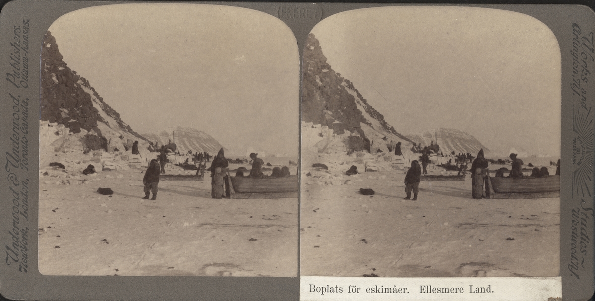 Stereobild av boplats för eskimåer. Ellesmere land, Canada.
