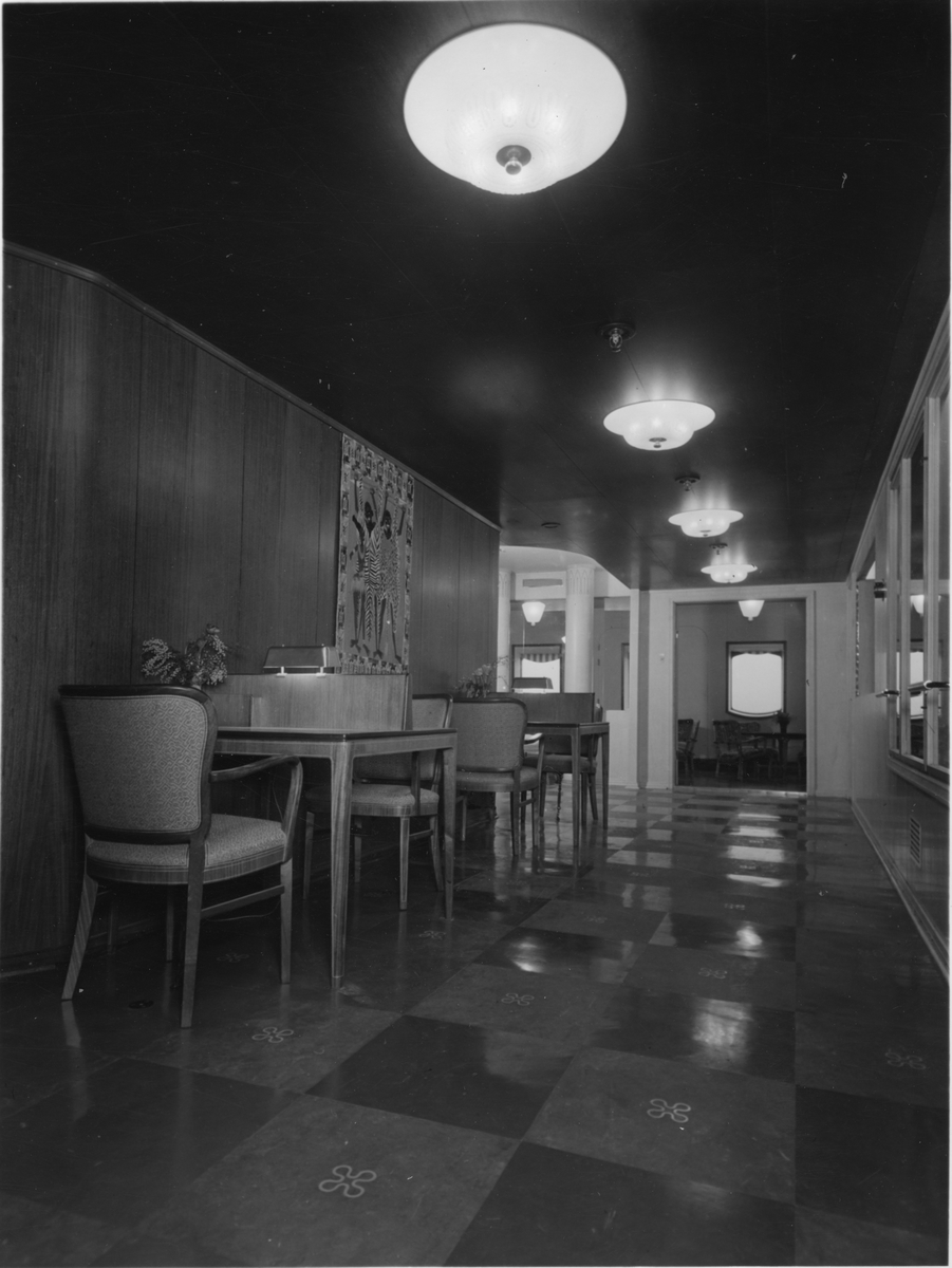 Ombord på fartyget M/S 611 Stockholm vid Svenska Amerika Linien, 1948.