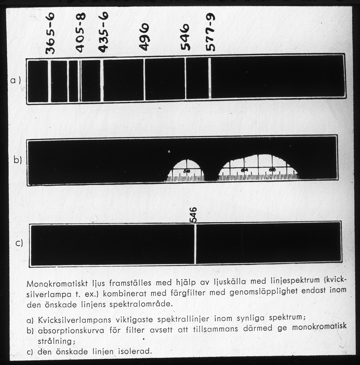 Skioptikonbild från Institutionen för fotografi vid Kungliga Tekniska Högskolan. Använd av professor Helmer Bäckström som föreläsningsmaterial. Bäckström var Sveriges första professor i fotografi vid Kungliga Tekniska Högskolan i Stockholm 1948-1958.