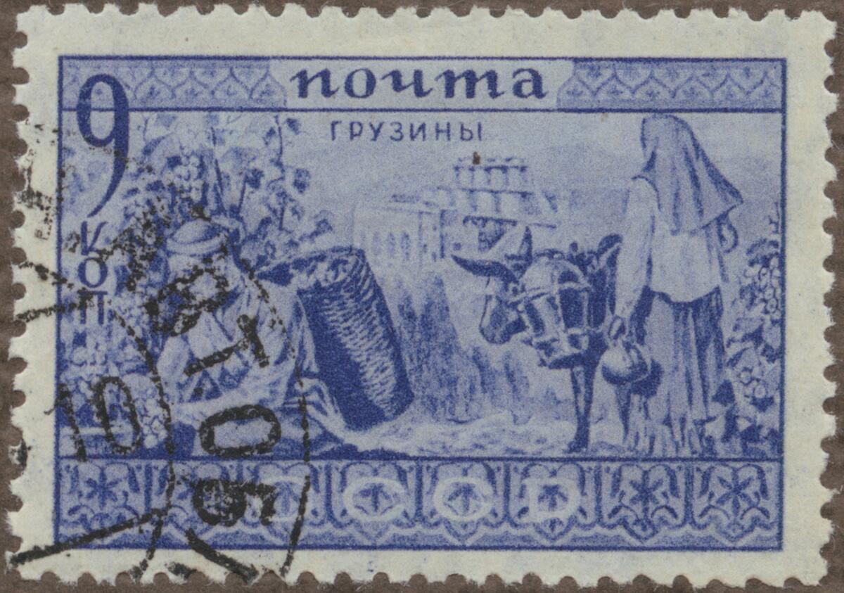 Frimärke från Ryssland, 1933. Motiv av Skördearbete i Georgien "Etnografisk serie"
