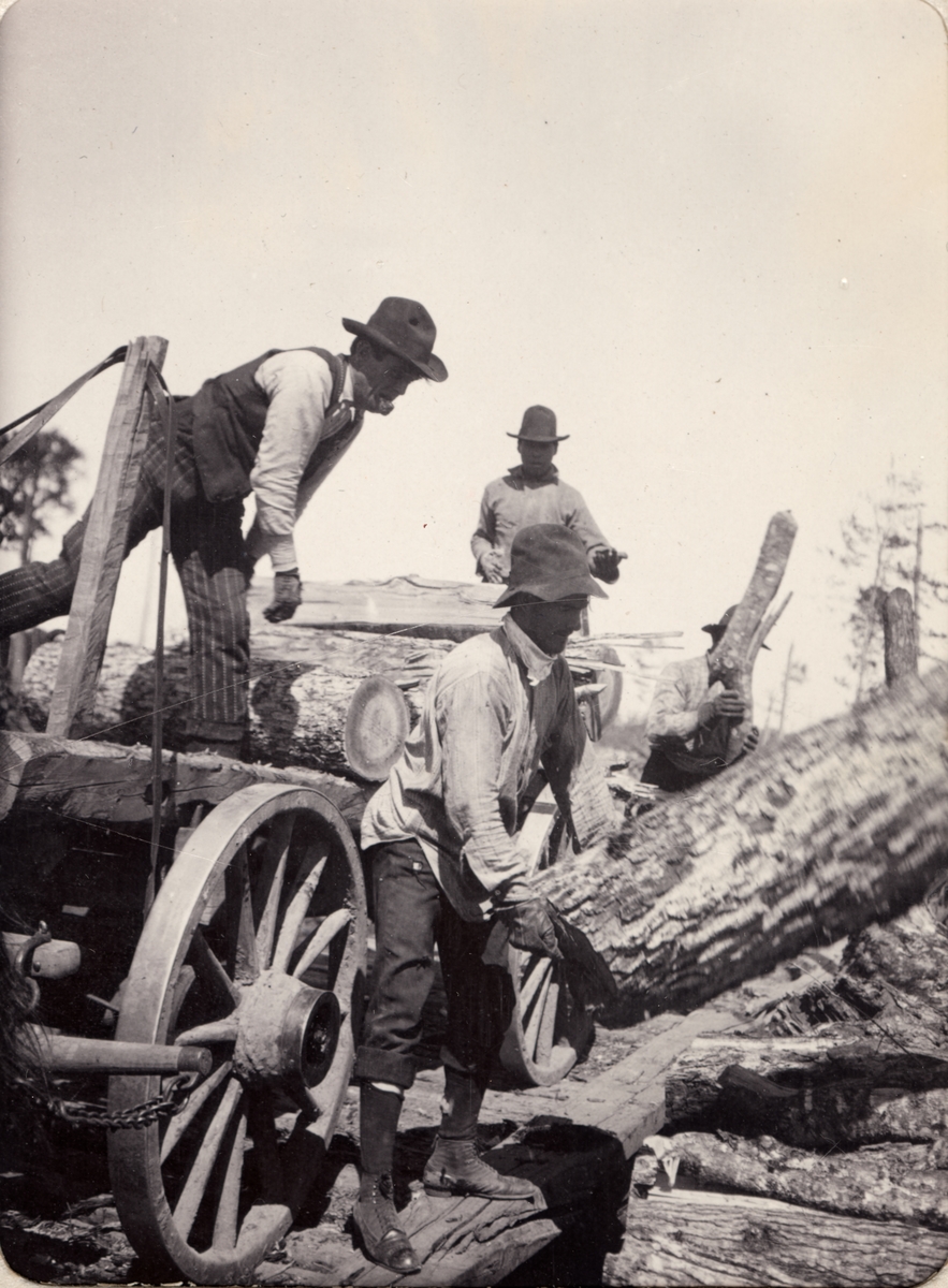 Kolved aflossning (avlossning) å jernvägsvagn (järnvägsvagn). (Michigan). Ur album Fotografier från amerikanska Träkolshyttor 1905/1906.