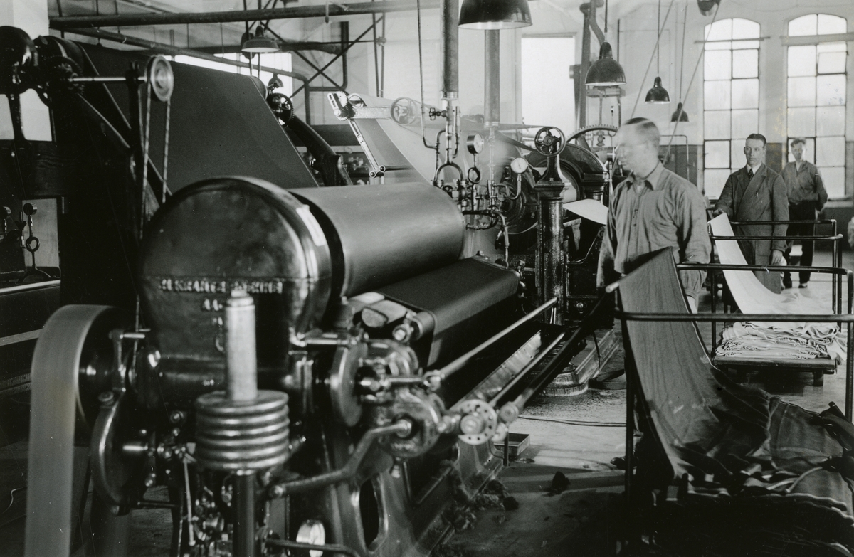 AB Förenade Yllefabrikerna i Norrköping. Varmpressning.