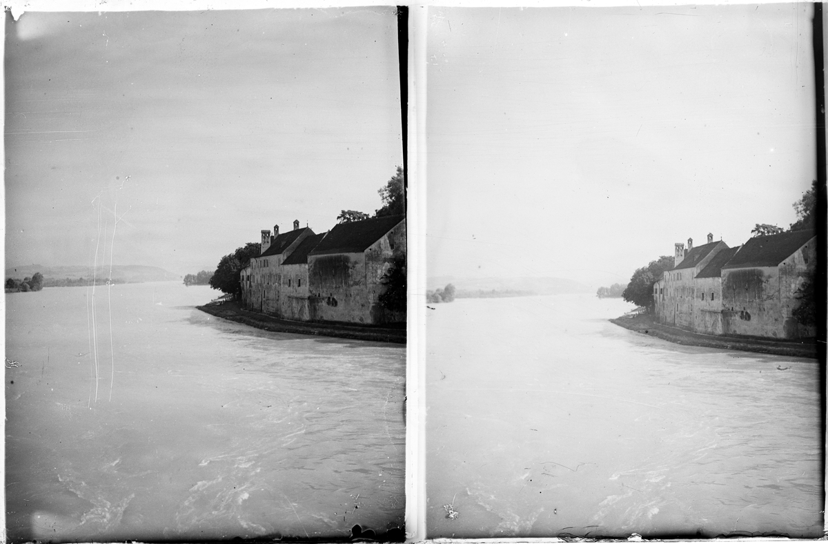 Stereonegativ med motiv från okänd plats. Möjligen längs flod i Tyskland.