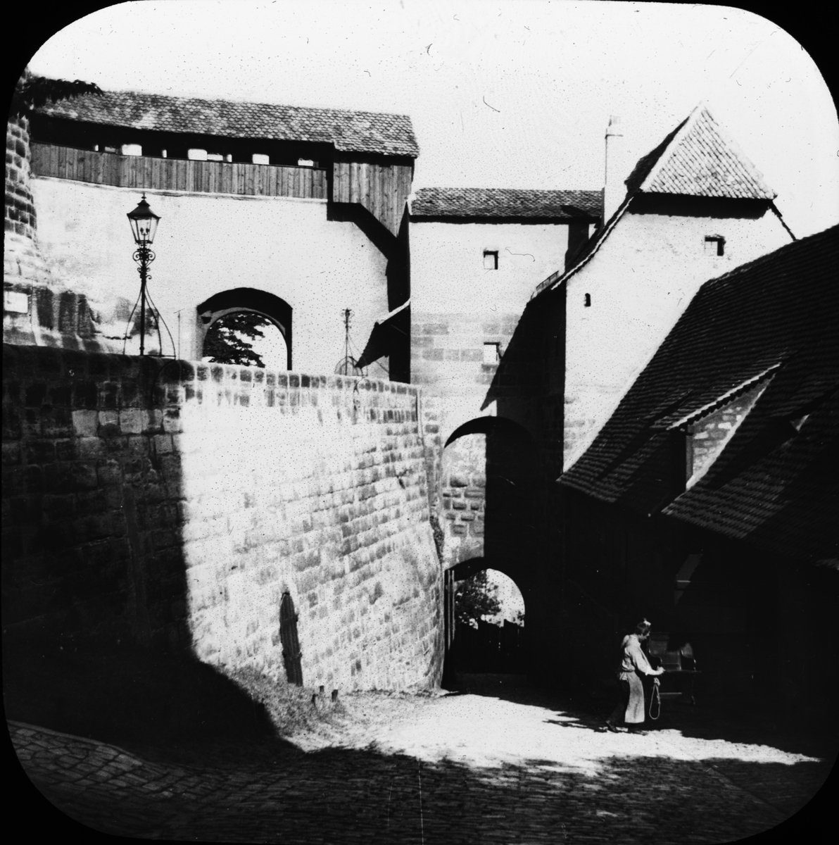 Skioptikonbild med motiv av uppgången till Die Nürnberger Burg.