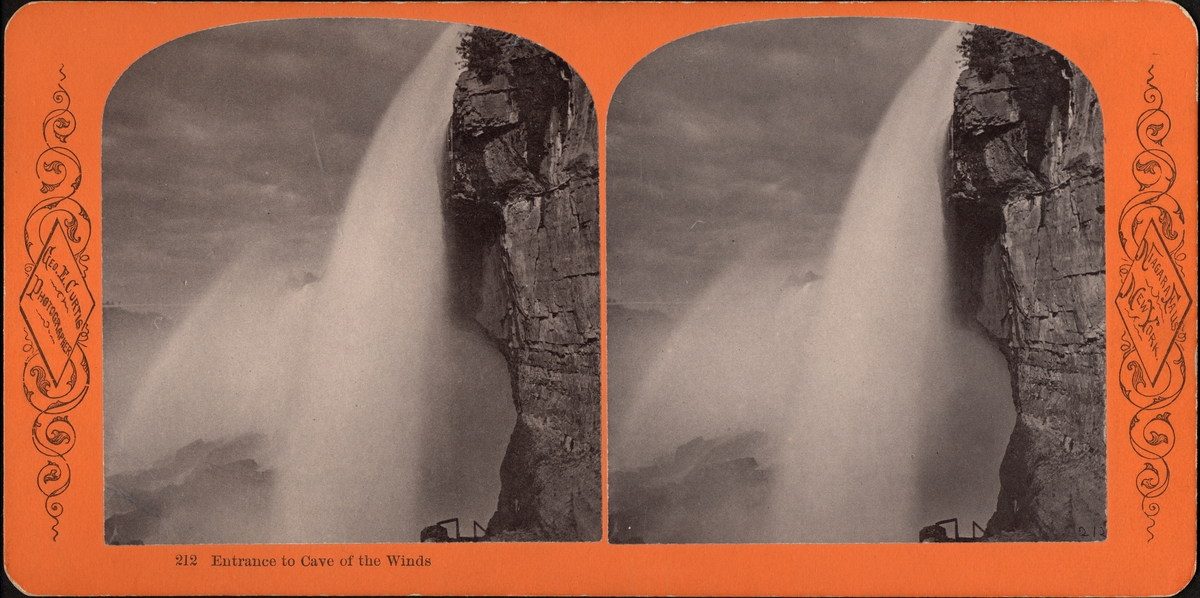 Stereobild av ingången till Cave of the Winds, Niagara Falls.